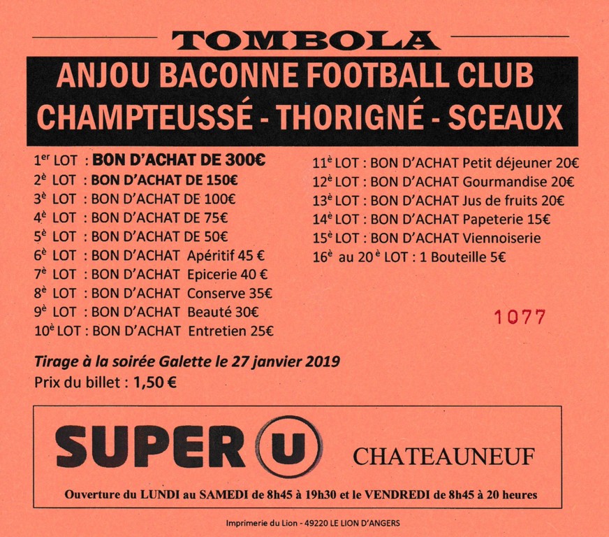 Les lots sont à retirer auprès de Sébastien Houdin